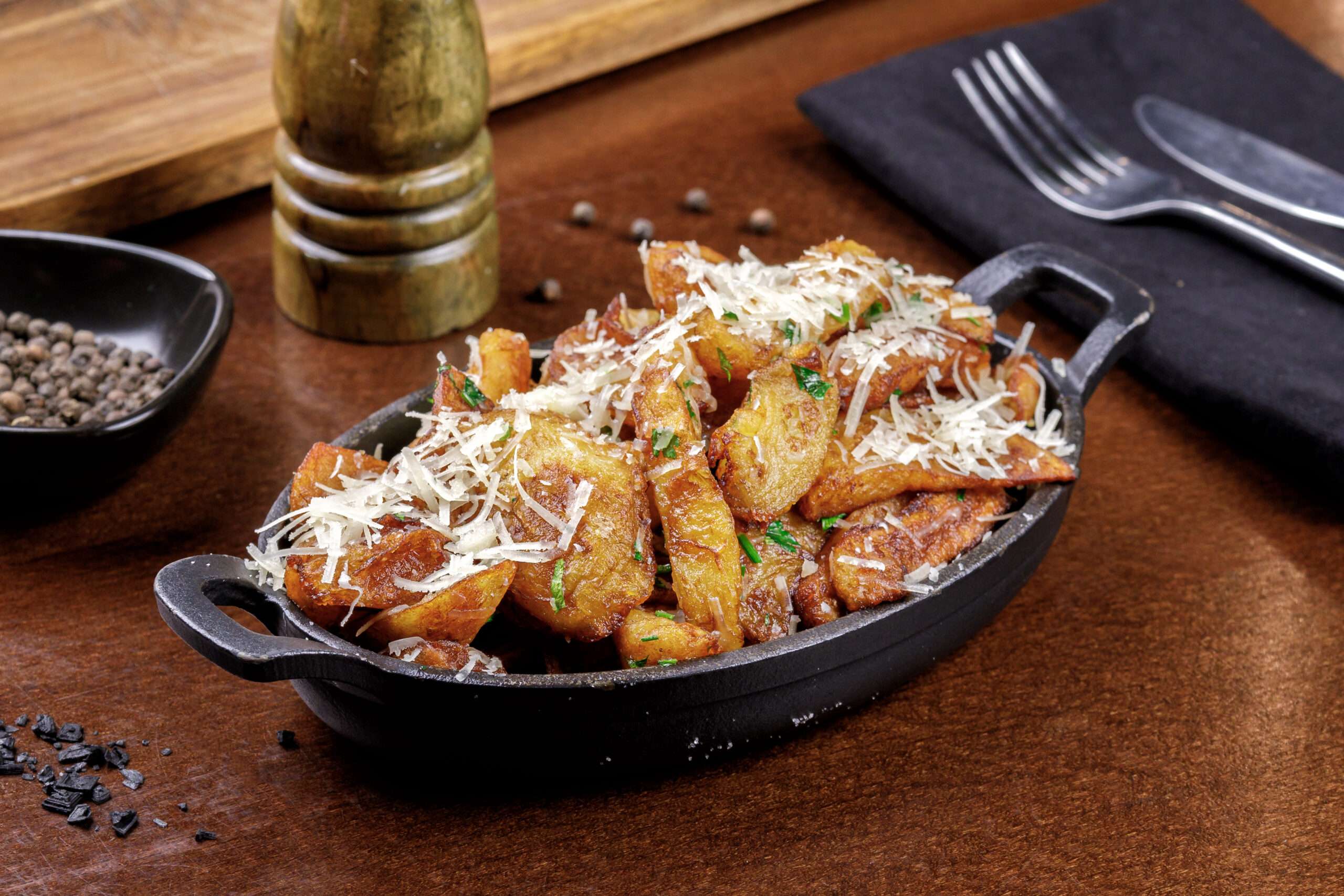 Cartofi prajiti cu parmezan, usturoi si patrunjel 200 g